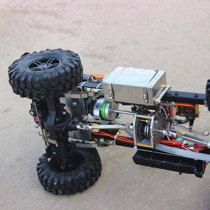 2, The frame includes the main frame, axle, tire, gear box, transmission shaft, steering gear mounting frame, steering / throttle / shift lever, Reduction pulley, bow plate damping. The gears inside the axle are made of all metal and the axle housing is made of plastic. Electronic equipment includes four-channel remote control and receiver, steering engine, throttle brake steering engine, gear shift steering engine (can control throttle, brake, forward and backward gear shift, left and right direction)